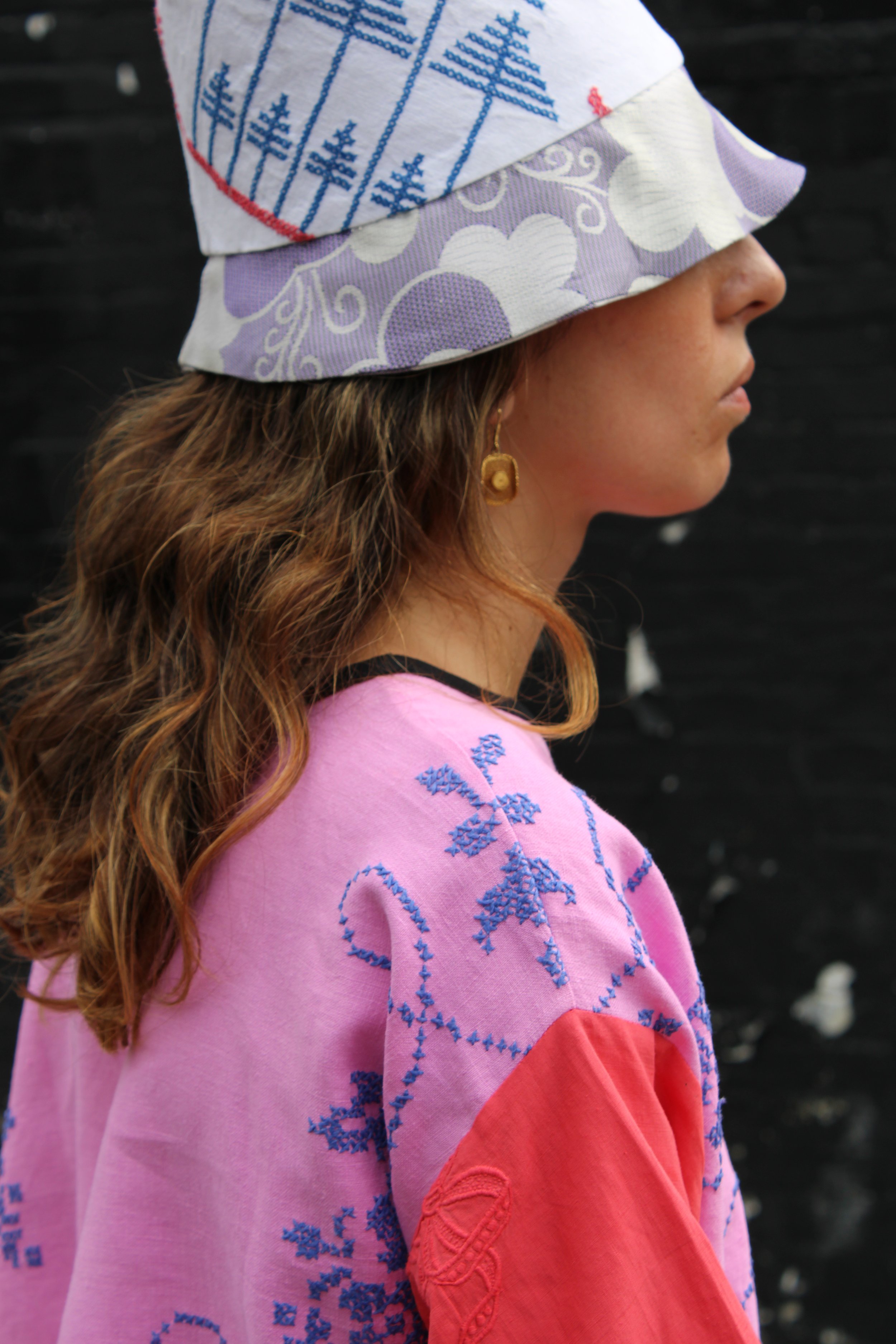 Modern Folklore - London, is inspired by the concept of friends and lovers exchanging and treasuring garments that are made to be loved, worn, shared. The wish is that Coded Cloth pieces, each a one-off collage of unique fabrics become contemporary heirlooms, embracing a non-generational approach to fashion. Playfully inspired by 1970s sportswear, 1990s colour block unisex shell suits and contemporary athleisure: sewing circle meets skate park: shall we call it ‘urban utopian’? This season offers a modern take on sartorial folklore. Moving towards genderless fashion through the introduction of sweatshirts that the sexes can share between them. Offering a few core shapes- ‘The City’ and ‘The Sea’, as well as patchworked bucket hats.